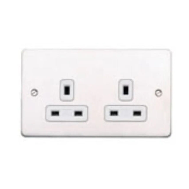 Novar ED&S SKT 2 GANG UNSWTCHD DUAL EARTH 13A LACQUERED BRSHD STL WHI I Edge K14781LBSW