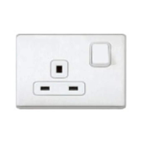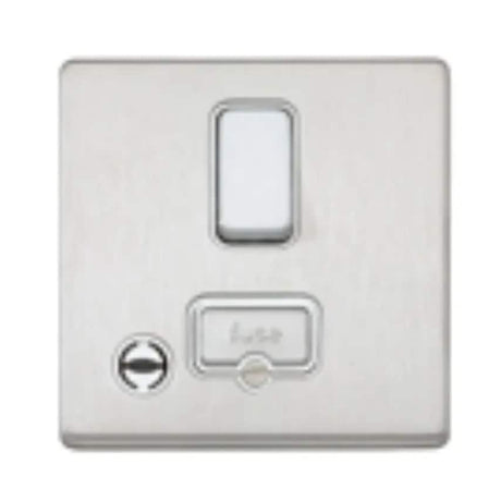 Socket 1 Gang Switched DP Clean Earth 13A Lacquered Brushed Steel White