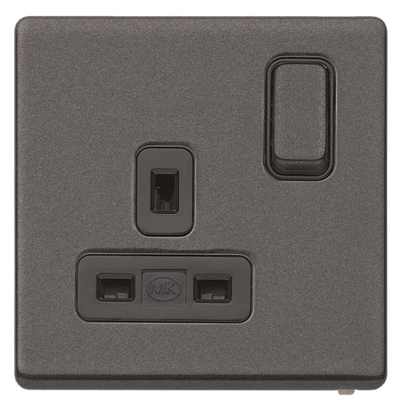 Low stock (10 units)£18.69Unit price /UnavailableSocket 1Gang Switched DP Black Insert Te x tured Iron