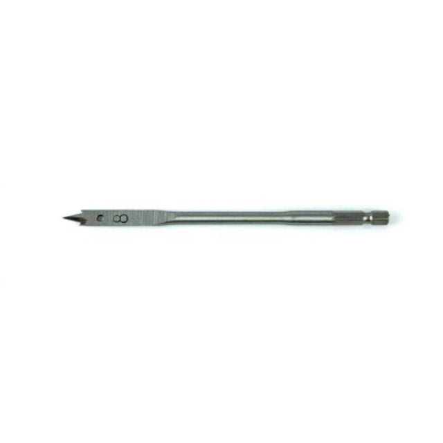 Flat wood bits, also known as spade bits, are ideal for drilling precise holes in wood. The 8mm x 152mm Flat Wood Bit provides efficiency and accuracy for your drilling needs. Size : 8mm diameter, 152mm length Type : Flat Wood Bit (Spade Bit) Features : Flat, Spade-Shaped Blade : Designed with a sharp point and two cutting edges to cut through wood quickly and effectively. High-Quality Materials : Ensures durability and reliable performance. Quick Release Shank : Allows for easy size changes without loosening the chuck. Smooth Finish : Delivers clean, precise holes and a professional finish. Brand : PTI