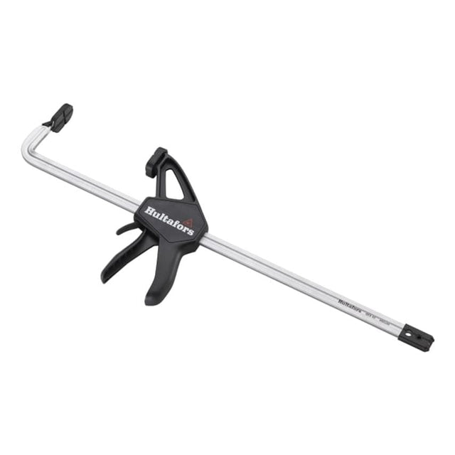 The Hultafors QCX Quick Clamp is compact and user-friendly thanks to its one-hand grip. Its steel rail has been forged in one piece and the housing is made of fibreglass-reinforced nylon. The hardened rod and bricks provide increased durability and high performance. A slim front jaw provides increased access in narrow spaces. Pressure plates feature tracked rubber pads to protect the surface and provide increased clamping force. Its reversible head enables both internal and external attachment. Specifications: Clamping Force: up to 120kg.