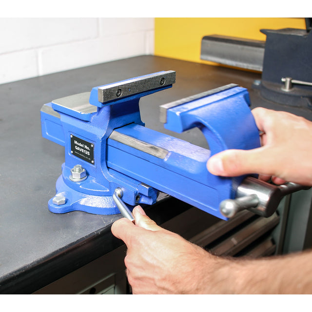 Manufactured to a high standard from SG iron with a swivel base and quick jaw release for versatility. Features built-in anvil and replaceable steel jaws.