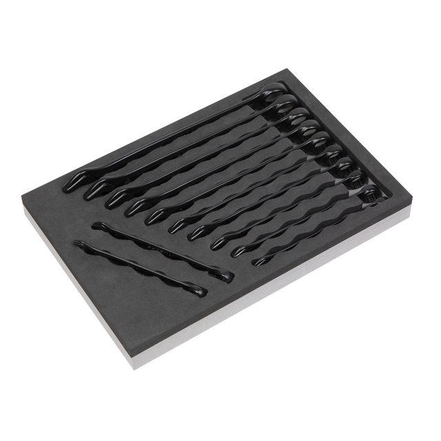 15 Offset open-end and WallDrive ring combination with long slim shafts.