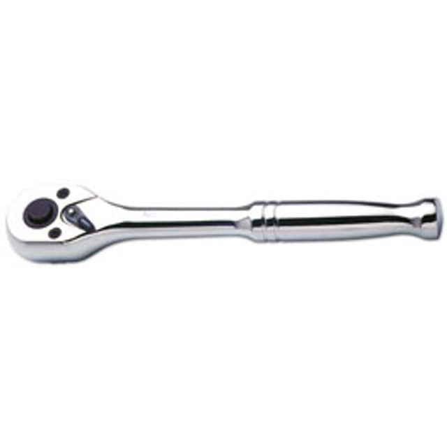 Fully polished ratchet with quick release mechanism. 24 teeth ratchet mechanismQuick release function. Manufactured from chrome vanadium with chrome molybdenum square drive. Ratchet repair kit available, please see Laser Part No. 1546.