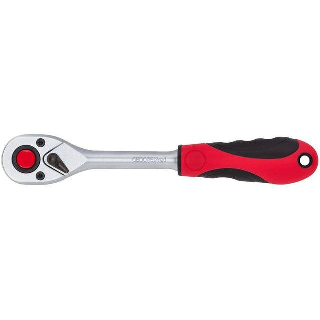 Lever for reversible clockwise/anticlockwise operation Push-button release Fine-toothed Oval head Dual-material handle, for easy handling Matt chrome-plated surface For sockets, accessories etc. with square drive as per DIN 3120 - C 12.5, ISO 1174, with ball retention groove Chrome-vanadium steel