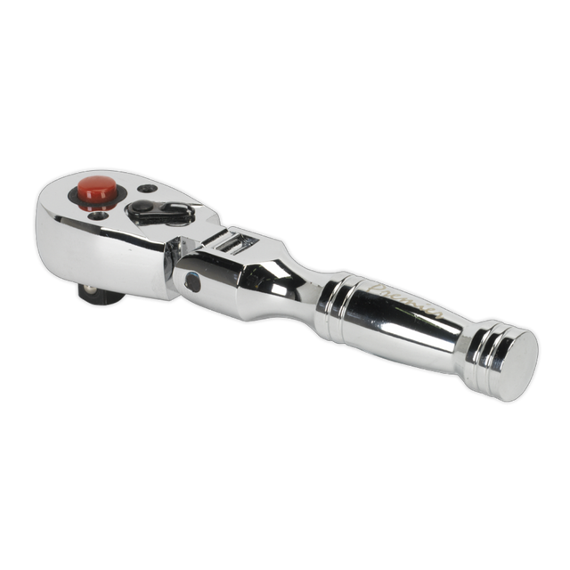 Chrome Vanadium steel 72-tooth ratchet wrench. Hardened and tempered with a fully polished mirror finish. Slim style contoured handle with pear-head design. Stubby configuration gives improved access in confined spaces. Features 180 flexi-head, flip reverse and quick release mechanism.