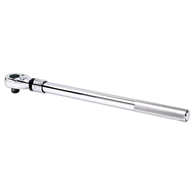 Ratchet wrench with forged Chrome Vanadium steel inner and outer shafts, heat treated with a fully polished mirror finish. Quick release locking ring retains extension at set increments, giving six different shaft lengths. Soft grip handle for added comfort and control. Pear-head design with flip reverse mechanism and spring-loaded socket retaining ball.