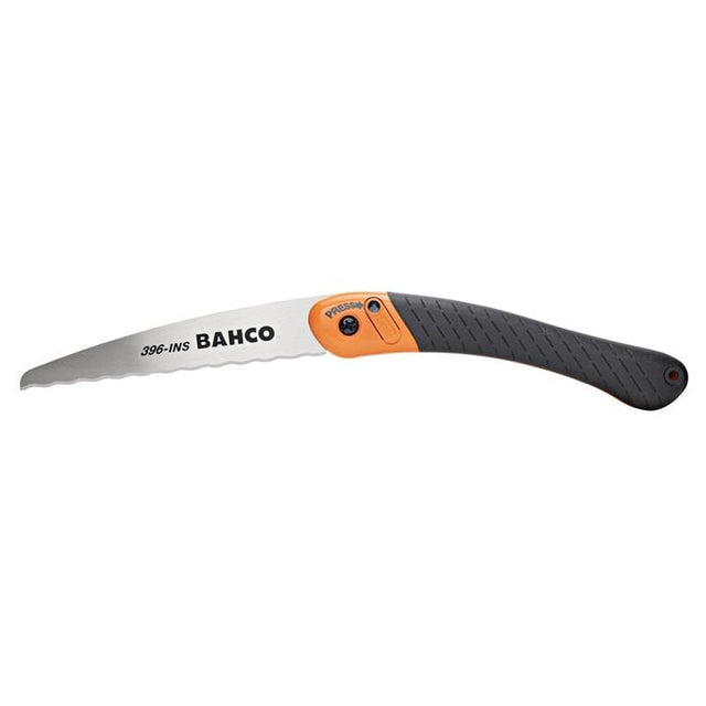 Bahco 396-INS Folding Insulation Saw with super sharp wavy toothing (WT) for a smooth and clean cut. Cuts insulation materials glass wool, stone wool, etc. Ideal for use when space is limited. Fitted with a strong handle and a soft, non-slip grip for increased comfort and control. There is also a safety lock on the blade that can be used in the opened and closed position. Specification Blade Length 175mm Folded Length 230mm