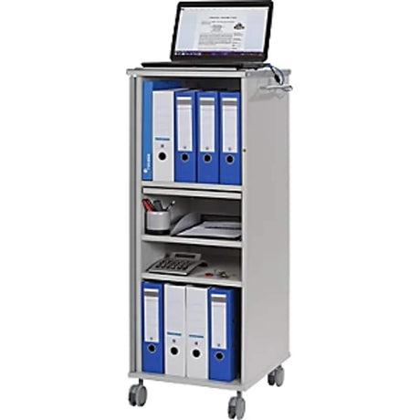 Office And Media Caddy, With 4 Compartments, 1 Extendable Countertop, Light Grey