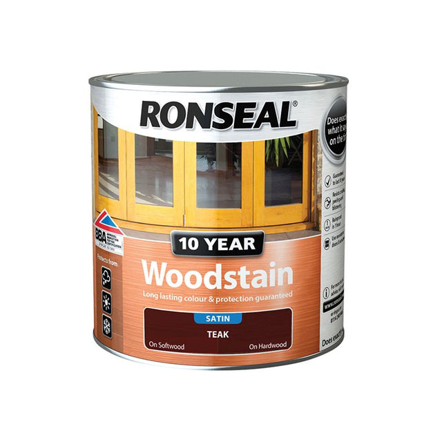 Ronseal 10 Year Woodstain offers the best protection against the weather, leaving your wood looking great for 10 years. You don't need to use any base coats or primers. It won't flake or peel. BBA approved.Suitable for all smooth planed exterior wood. Not suitable for decking. Specification: Drying Time: 1 hourCoverage: 18m per litre