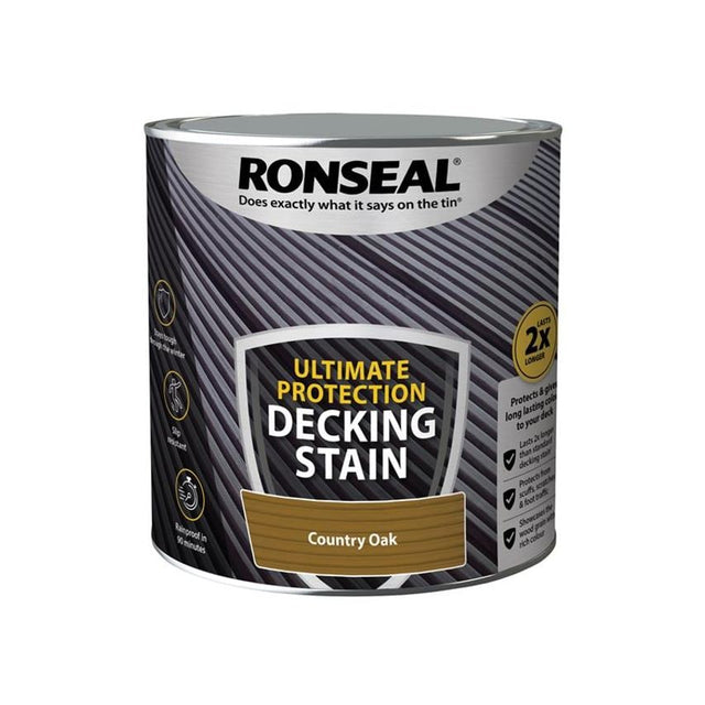 Ronseal Ultimate Protection Decking Stain will keep your deck protected from the weather and everyday wear and tear. It looks great all year round, with added slip resistance. It lasts twice as long as a standard decking stain. Available in a range of colours.