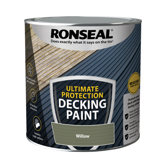 Ronseal Ultimate Protection Decking Paint 2.5L Willow Transforms all types and ages of decking. Fills in cracks and locks down splinters. Long-lasting weather protection. Smooths rough surfaces and rescues tired decks.