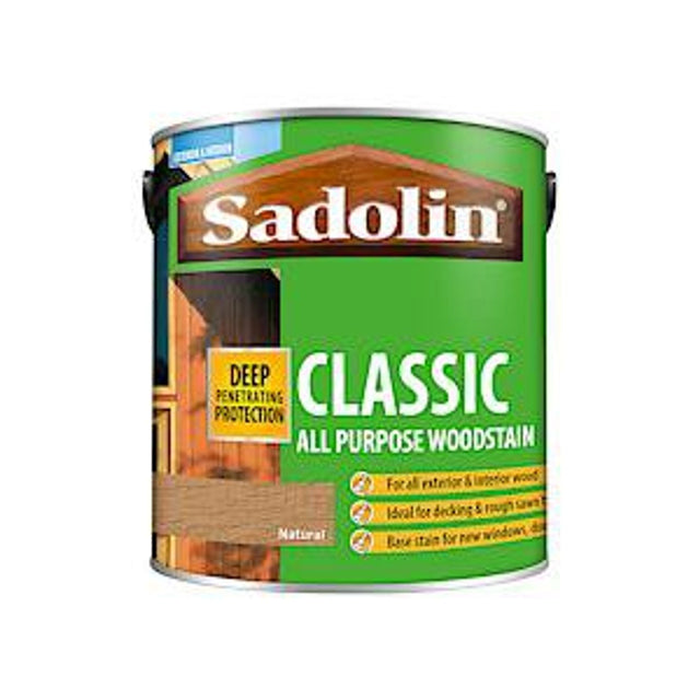 Sadolin Classic Wood Protection 2.5 Litre - Natural Highly versatile all purpose woodstain for deep penetrating protection Provides tough weather protection and excellent durability Easy to apply, especially over large surface areas Ideal for use on decking, cladding and other large surface areas Resists blistering and flaking