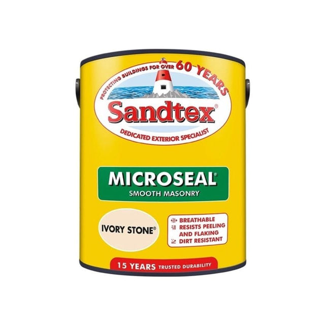 Sandtex Smooth Masonry 5L Ivory Stone Microseal technology, masonry paint ensures that surfaces are dirt resistant, breathable and waterproof for flawless coverage and protection for longer