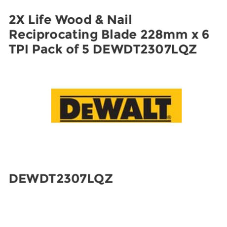 Low stock (10 units)£879.99Unit price /Unavailable2X Life Wood & Nail Reciprocating Blade 228mm x 6 TPI Pack of 5 DEWDT2307LQZ