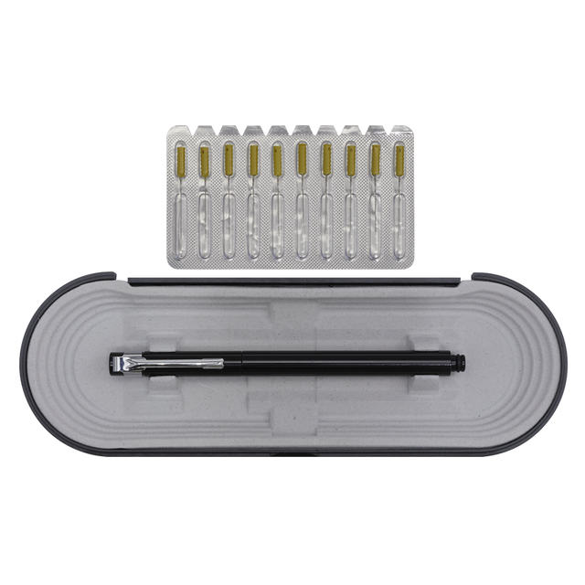 Aluminium pen with quick change needles. Designed to remove particles from wet paint and prevent bubbles. Supplied with needles set and a storage case.