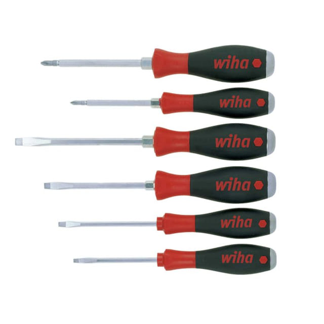 The Wiha SoftFinish Screwdriver comes with a hexagonal Chrome vanadium steel blade, matt chrome plated. The hex bolster can be used in conjunction with a spanner, ideal for loosening stubborn screws and applying higher torque values. A patented SoftFinish handle ensures work is kind to hands and muscles. Recommended by doctors and therapists at the German Campaign for Healthier Backs. The unique Wiha handle-length concept provides optimum balance of torque and control. An integrated striking cap allows you to strike and lift with the screwdriver. This 7 Piece Set contains the following sizes: 4 x Slotted Screwdrivers: 3.5 x 75mm, 4.5 x 90mm, 5.5 x 100mm &6.5 x 125mm. 2 x Phillips Screwdrivers: PH1 x 80mm &PH2 x 100mm.