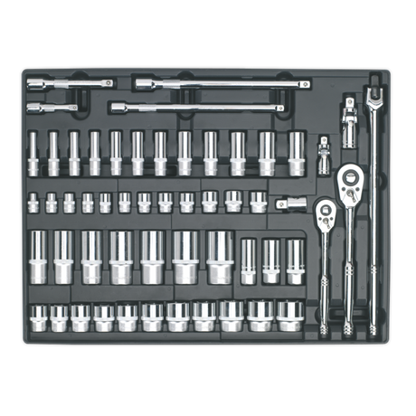 Low stock (10 units)£87.99Unit price /UnavailableTool Tray with Socket Set55 Piece 3/8" & 1/2" Square Drive