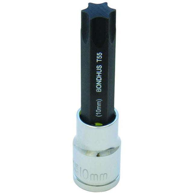 ProHold Socket TORX HEX Bit w/Socket Size: T9 Length: 2" Socket: 1/4" DR Stock Size: 3MM With ProHold Button Technology. Protanium High Torque Steel and ProGuard corrosion resistant finish