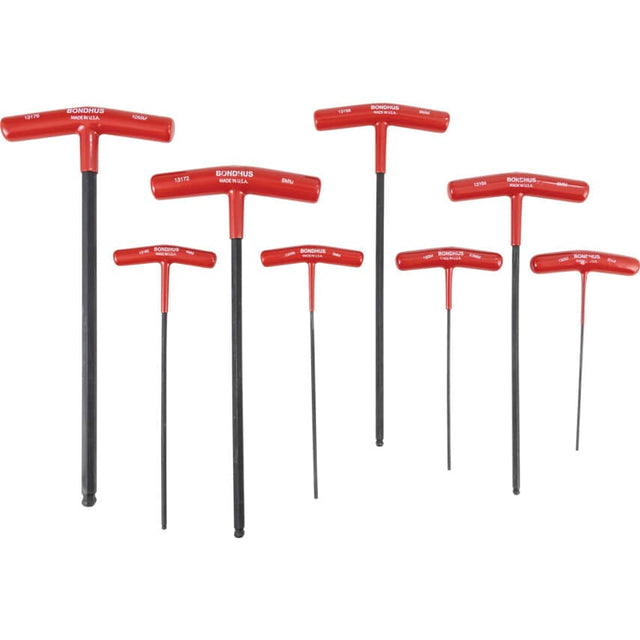This 8 piece metric hex and hex ball driver set features cushion grip T-handles that are ergonomically shaped for comfortable use, with reduced hand fatigue during extended use. Developed with Bondhus' special brand of steel, the tool lasts much longer than other tools and helps to prevent corrosion.