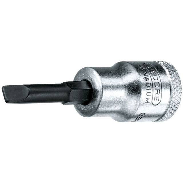 Hand-operated, knurled grip Chrome-plated With pressed-in pin in GEDORE vanadium special steel, manganese-phosphated Blade as per DIN ISO 2380-1, Form B Blade tip acc. to DIN ISO 2380-1 Form B