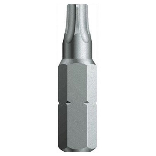 Screwdriver bits are typically made up of a shaft and a tip. A screwdriver bit's shaft is typically hexagonal in shape, with six flat sides. This shaft is fitted into the end of a screwdriver that has a bit holder. The shaft's shape prevents the bit from rotating within the bit holder. The tip end of a screwdriver bit may have many shapes.The bit's head is designed to fit into the head of a screw. As the screwdriver is spun, the bit rotates as well. This is what causes the screw to turn. Head style: Torx Wedge T30 Length: 25mm PTI T30 x 25mm Wedge Torx Screwdriver Bit 1/4" Hex Torx bits are shaped like 6-sided stars, and are utilised on everything from consumer electronics to cars. They are more resistant to cam-out than Phillips or slotted bits, as they allow a more even distribution of force.