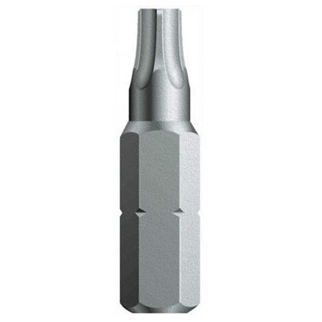 Screwdriver bits are typically made up of a shaft and a tip. A screwdriver bit's shaft is typically hexagonal in shape, with six flat sides. This shaft is fitted into the end of a screwdriver that has a bit holder. The shaft's shape prevents the bit from rotating within the bit holder. The tip end of a screwdriver bit may have many shapes.The bit's head is designed to fit into the head of a screw. As the screwdriver is spun, the bit rotates as well. This is what causes the screw to turn. Head style: Torx Wedge T27 Length: 25mm PTI T27 x 25mm Wedge Torx Screwdriver Bit 1/4" Hex Torx bits are shaped like 6-sided stars, and are utilised on everything from consumer electronics to cars. They are more resistant to cam-out than Phillips or slotted bits, as they allow a more even distribution of force.