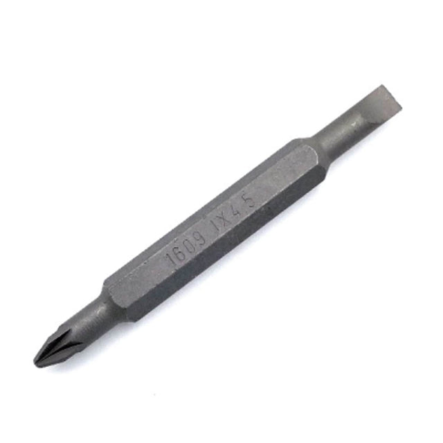 Screwdriver bits are typically made up of a shaft and a tip. A screwdriver bit's shaft is typically hexagonal in shape, with six flat sides. This shaft is fitted into the end of a screwdriver that has a bit holder. The shaft's shape prevents the bit from rotating within the bit holder. The tip end of a screwdriver bit may have many shapes.The bit's head is designed to fit into the head of a screw. As the screwdriver is spun, the bit rotates as well. This is what causes the screw to turn. Head style: Pozi/Slotted double ended Length: 60mm PTI PZ1 - 0.6 x 4.5mm Slotted Double Ended Screwdriver Bit With four more contact points, the Pozidrive screwdriver is an enhanced version of the Phillips screwdriver. These points reduce the likelihood that the bit will cam out, enabling more torque to be applied. Additionally, this shape offers a larger driving surface and reduces wear. Although they used to be the most frequent kind of screw available, slotted head screws are no longer particularly common. However, screwdriver tips are still produced for them, and the size of the screw they turn determines their gauge. However, because the driver bit frequently comes loose from the head and poses a risk of damaging the material around it, they are rarely utilised in situations where a power tool would be appropriate.