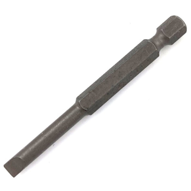 PTI 5.0mm x 0.8mm x 70mm 1/4" Hex Slotted Screwdriver Bit Screwdriver bits are typically made up of a shaft and a tip. A screwdriver bit's shaft is typically hexagonal in shape, with six flat sides. This shaft is fitted into the end of a screwdriver that has a bit holder. The shaft's shape prevents the bit from rotating within the bit holder. The tip end of a screwdriver bit may have many shapes.The bit's head is designed to fit into the head of a screw. As the screwdriver is spun, the bit rotates as well. This is what causes the screw to turn. Head style: Slotted Length: 70mm Although they used to be the most frequent kind of screw available, slotted head screws are no longer particularly common. However, screwdriver tips are still produced for them, and the size of the screw they turn determines their gauge. However, because the driver bit frequently comes loose from the head and poses a risk of damaging the material around it, they are rarely utilised in situations where a power tool would be appropriate.