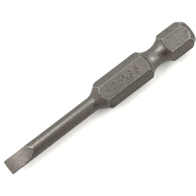 PTI 3.5mm x 0.6mm x 50mm 1/4" Hex Slotted Screwdriver Bit Screwdriver bits are typically made up of a shaft and a tip. A screwdriver bit's shaft is typically hexagonal in shape, with six flat sides. This shaft is fitted into the end of a screwdriver that has a bit holder. The shaft's shape prevents the bit from rotating within the bit holder. The tip end of a screwdriver bit may have many shapes.The bit's head is designed to fit into the head of a screw. As the screwdriver is spun, the bit rotates as well. This is what causes the screw to turn. Head style: Slotted Length: 50mm Although they used to be the most frequent kind of screw available, slotted head screws are no longer particularly common. However, screwdriver tips are still produced for them, and the size of the screw they turn determines their gauge. However, because the driver bit frequently comes loose from the head and poses a risk of damaging the material around it, they are rarely utilised in situations where a power tool would be appropriate.