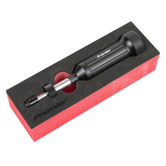 Manufactured from high carbon steel with a contoured aluminium handle for comfort and control. Ideal for automotive based applications including the replacement of airbags, crash sensors and inertia reel fixtures. Also suitable for general factory and workshop use. Quick release 1/4"Hex drive bit holder. Calibrated in accordance with BS EN 6789:2017. Includes test certificate. Supplied in foam storage tray.