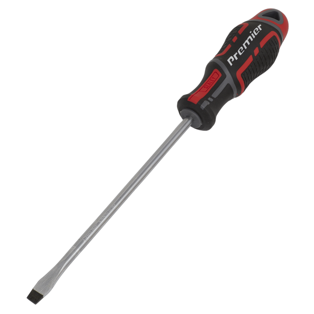 High quality Chrome Vanadium satin finished shaft with shot blasted and magnetized tip. Ergonomic polypropylene and TPV rubber soft grip handle maximize power transfer from hand to fixing. Includes hanging hole for alternative storage.