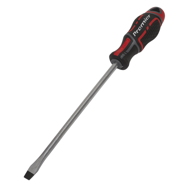 High quality Chrome Vanadium satin finished shaft with shot blasted and magnetized tip. Ergonomic polypropylene and TPV rubber soft grip handle maximize power transfer from hand to fixing. Includes hanging hole for alternative storage.