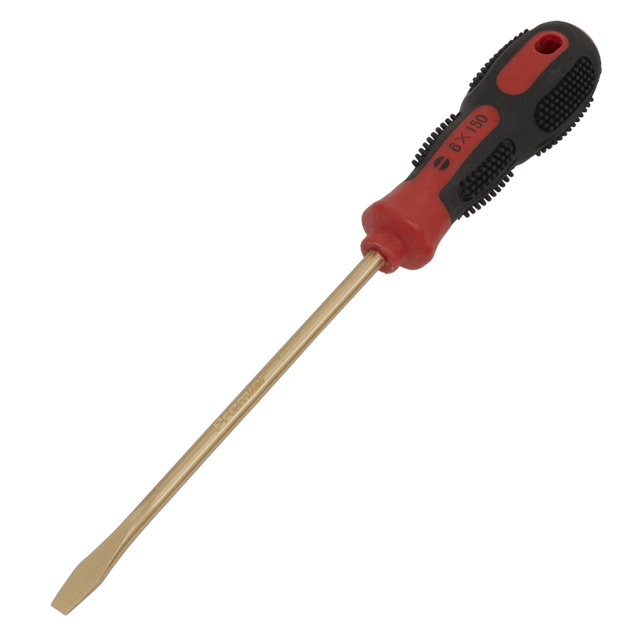 Manufactured from Beryllium Copper. Die Forged. Contoured handle with soft grip to maximize comfort and control. Hanging hole for safe storage.