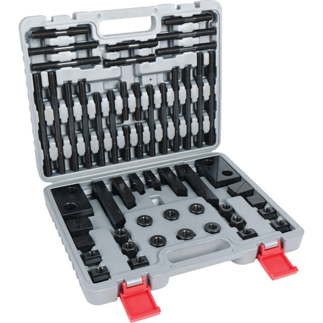 Efficiently tackle T-Slot clamping challenges with the T-Slot Clamping Kit, offering precision solutions for diverse applications. Crafted from durable S45C (JIS)/CK45 (DIN) grade non-alloy carbon steel and heat-treated for strength, it ensures reliable performance. The manganese phosphate finish enhances wear resistance, and its organized plastic case facilitates convenient storage and transport.
