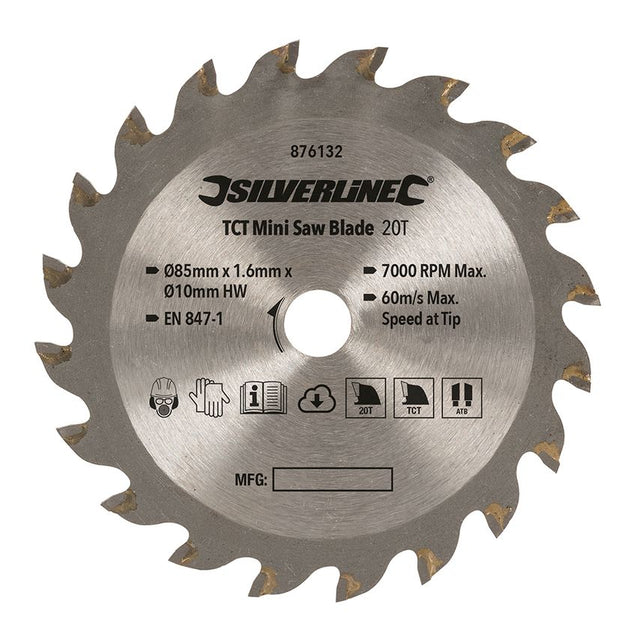 TCT Mini Saw Blade 85mm Dia - 10mm Bore - 20T
