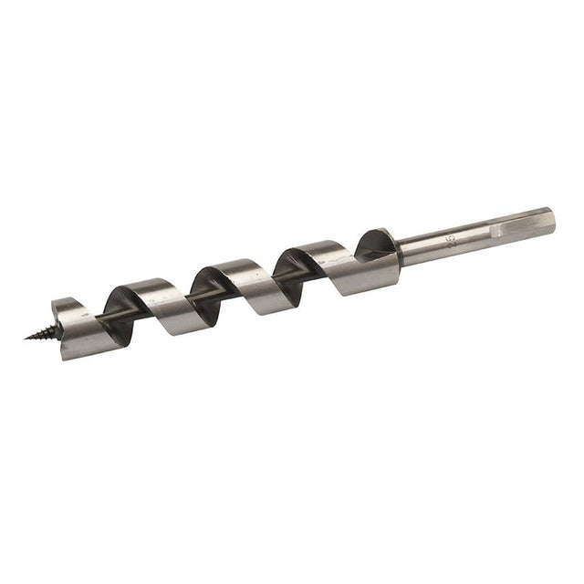 Precision ground, hardened high carbon steel hex shank auger bit. Fine pitch spiral pulls auger into workpiece and single spur slices timber ahead of the cutting edge, for accurate holes.