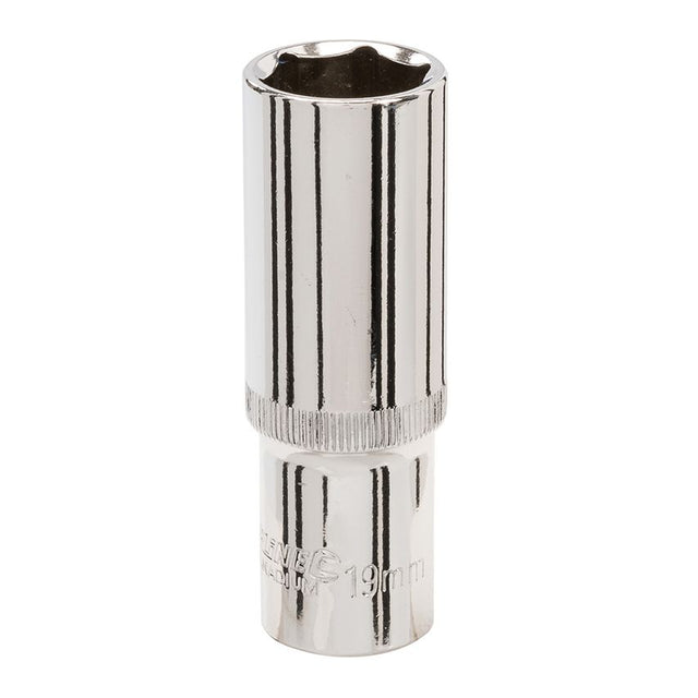 Deep 6-point hex socket for maximum torque transfer to the face of the fastener. Precision cold-forged, hardened and tempered chrome vanadium steel. Fully polished and nickel chrome-plated for durable corrosion resistance. Chamfered ends and thin walls for positive location on fastener. Knurled ring provides grip and control in the hand, and bearing hole provides solid connection to the tool.