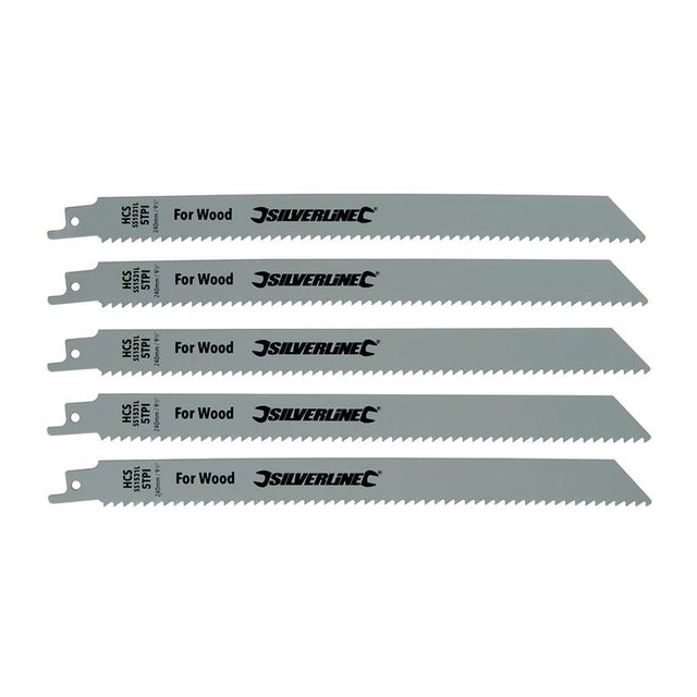 High carbon steel blades for fast rough cuts in wood. Ideal for pruning trees and shrubs, cutting roots, pallet wrecking and firewood. 5.2mm tooth pitch. Compatible with all universal 1/2" shank recip and sabre saws.