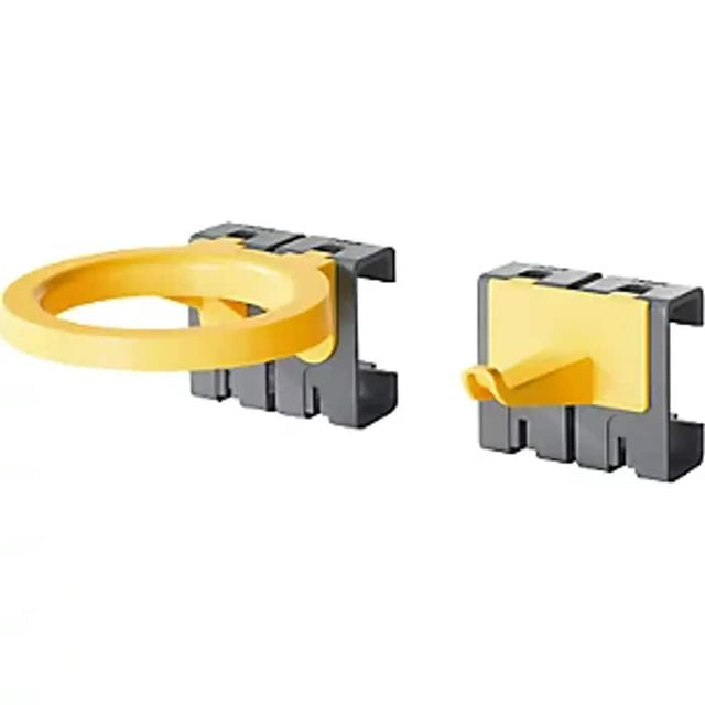 Professional tool holder, set 4, made of plastic. Supplied = flat pack. Scope of delivery = 1 round holder 80 mm, 1 heavy duty hook length 56 mm. Material = ABS plastic. Product type = accessories. Versatile. Flexible. Durable. Robust, high strength ABS plastic. Hardwearing, chemical resistant, heat resistant. 1 round holder, 80 mm and 1 heavy duty hook, length 56 mm.