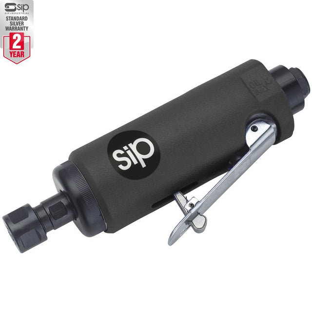 The SIP 1/4" Air Die Grinder is a high velocity yet low vibration tool designed for added comfort and efficiency in all prolonged grinding tasks, with a rubber-coated aluminium body helping to keep vibration and movement to a minimum. Designed for heavy-duty grinding in garages and workshops.