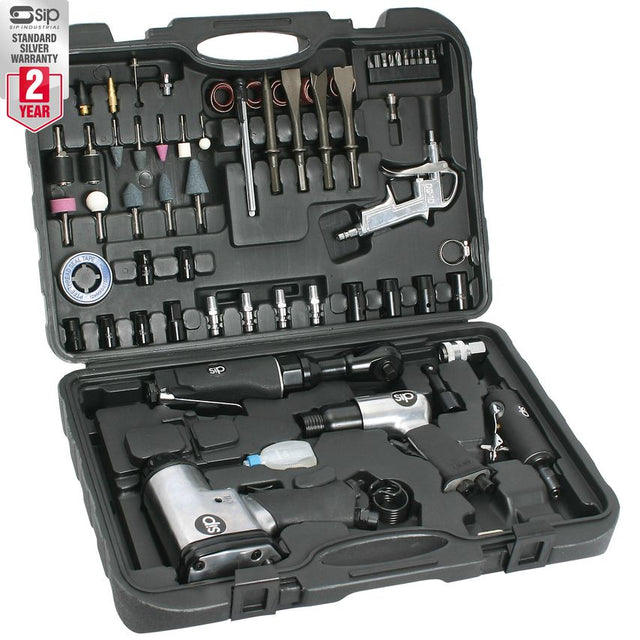 The SIP 73pc Air Tool Kit is a comprehensive set encompassing 4 standalone tools and selection of accessories and consumables that complement them perfectly, making it a one-stop shop toolkit for a selection of garages and workshops.