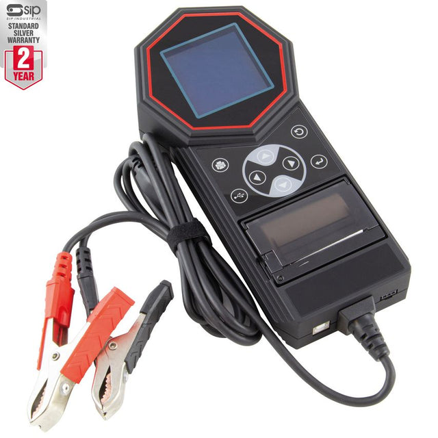Battery tester suitable for a range 12v motorcycle and car batteries. High quality tester with built-in memory saving printer. This premium Swiss construction tester can be used to conducts alternator, ground and starter tests 12/24v.
