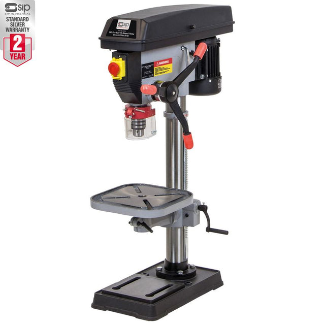 The SIP Pro B20 16-Speed 750w Bench Pillar Drill makes light work of preparing and finishing a variety of workpiece materials including ferrous and non-ferrous metals, woods and plastics. Using an adjustable tilting table and tilt scale, the drill can be easily positioned to enable accurate drilling.