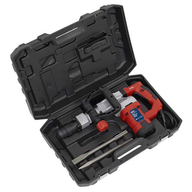 Powerful demolition breaker hammer with SDS MAX chuck. Vibration reducing shock absorbers built into body. Variable speed trigger. 360 Auxiliary handle. Supplied in metal storage case with pin and cold chisels.