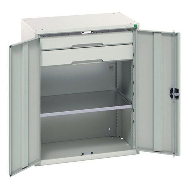 Combined drawer and shelf storage.Welded steel construction with reinforced doors. Double locking doors. Galvanised shelves, capacity:60kg.Roller bearing drawers, capacity:60kg.All models 550mm deep.10 year guarantee.UK made.More options available on line.