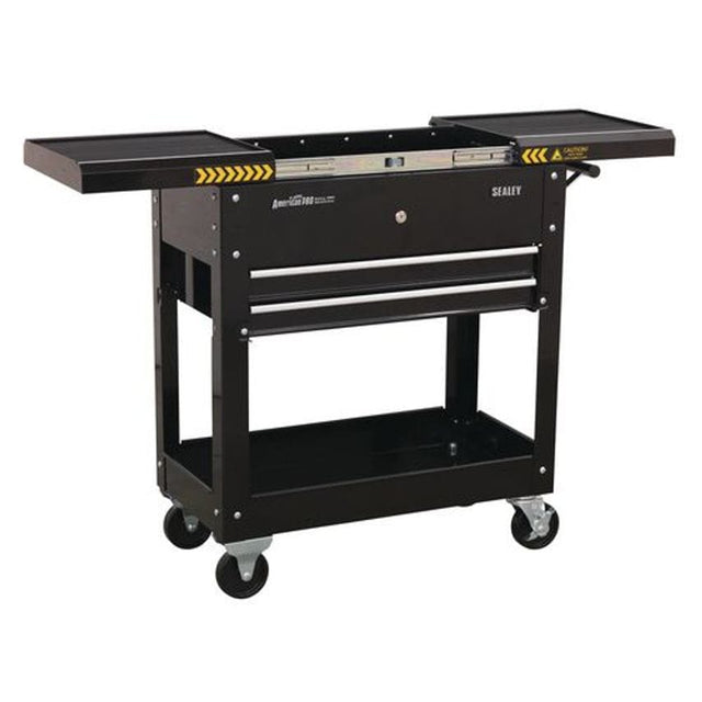 Heavy gauge steel construction.Lockable sliding top on smooth ball bearing runners.Twin drawers with heavy-duty 35mm ball bearing slides, lock when top is closed.Suitable for tools and parts.H830 x W770 x D370mm.Self assembly required.Capactiy:100kg.