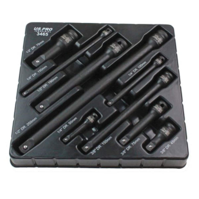 Set of extension bars for use with impact tools Features: Manufactured from Chromium Molybdenum Steel for strength Black Phosphate finish Supplied in a plastic tray Specification: 1/4" Drive bars: 50mm (2"), 100mm (4"), 150mm (6") 3/8" Drive bars: 45mm (1 3/4"), 75mm (3"), 150mm (6") 1/2" Drive bars: 75mm (3"), 150mm (6"), 250mm (10")