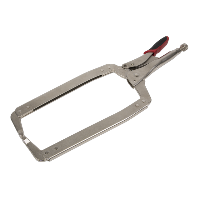 Heat treated Chrome Molybdenum and Chrome Vanadium steel construction with a nickel plated smooth satin finish. Suitable for clamping material whilst marking, welding, brazing, gluing or soldering. Extra-long jaw profile allows for clearance of obstacles in hard-to-reach areas. Features one hand no-pinch quick release grip which provides comfort and control, reduces hand fatigue and are much easier to use than traditional style locking pliers. Heavily knurled adjustment screw for extra grip with greasy fingers.