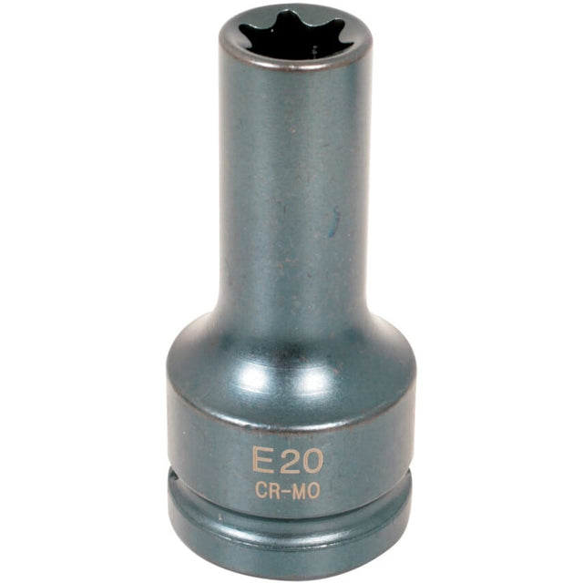 The 3/4in. square drive star impact socket is a vital tool for heavy-duty automotive applications like removing cylinder head and wheel flange bolts on HGVs. Crafted from durable materials, it withstands high torque forces and provides an extended reach with its 90mm length. Features and Benefits Crafted from chrome molybdenum for durability and longevity 90mm long for increased torque leverage Snug fit allows for easier handling and prevents slipping accidentsTypical Applications Removing cylinder head bolts from engines Removing wheel flange bolts on heavy goods vehicles (HGVs) Maintenance and repair tasks in automotive workshops Industrial machinery servicing Construction equipment maintenance Agricultural machinery repair